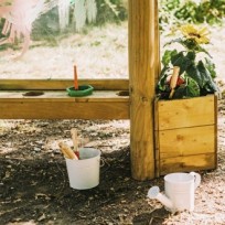 Também incorpora um móbil de vento e um vaso de flores para que possam aprender a cultivar os primeiros frutos e flores aromáticas.