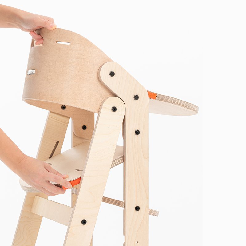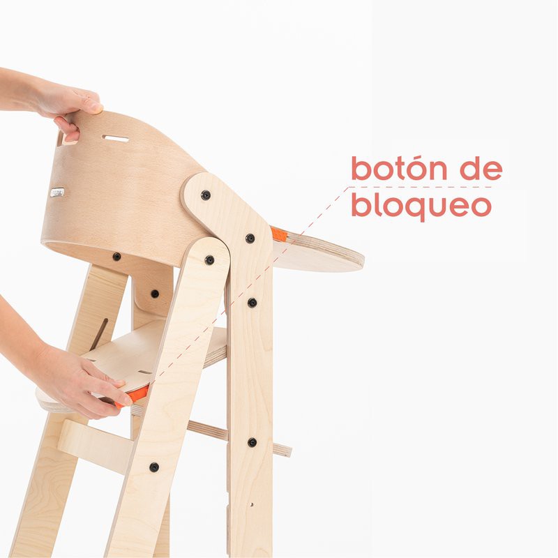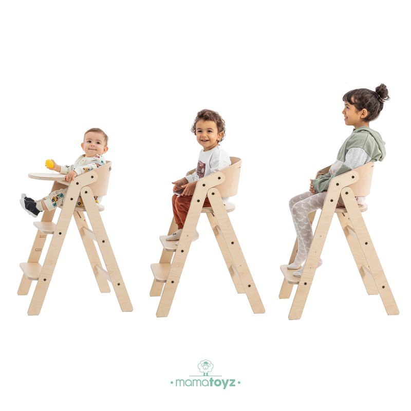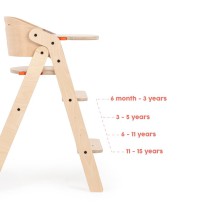 La MyChair trona plegable de madera evolutiva crece con tu hijo desde los 12 meses hasta los 15 años, adaptándose a sus necesidades en cada etapa. Con un diseño inteligente, esta trona ofrece: