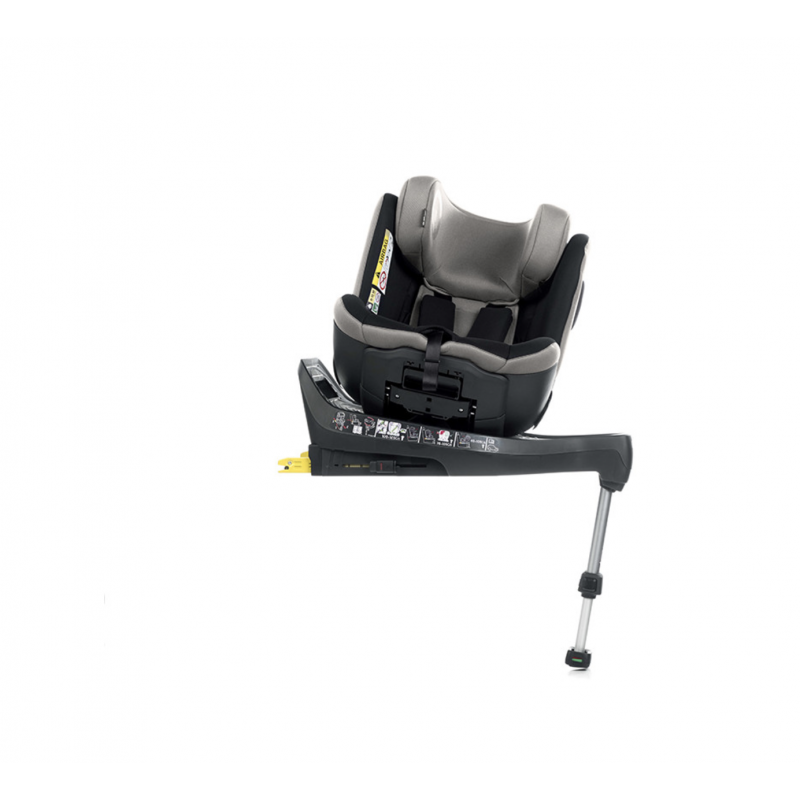 Pode ser instalado nos dois sentidos de deslocamento, contém Isofix, proteção lateral, perna de apoio, rotação de 360° com posição de carga para baby sit e redutor ajustável para recém-nascidos.