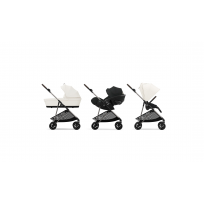 Seu assento reclinável e reversível permite que o bebê fique de frente para os pais ou para explorar o mundo ao seu redor. Melio também está equipado com um capuz solar XXL UPF50+ supremo que protege a criança do vento e da luz solar, impedindo a passagem da luz e permitindo uma ótima circulação de ar graças às suas duas janelas de malha.
