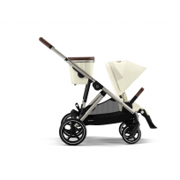 O carrinho Gazelle S pode ser dobrado facilmente. Você também pode dobrá-lo mesmo com os dois bancos instalados. Suas dimensões dobradas são: 86 x 36 x 65 cm