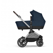 Este carrinho permitirá que você carregue seu bebê na alcofa até que ele comece a se levantar. Uma vez alcançado esse momento, você poderá transformar sua alcofa em cadeira trocando os componentes de tecido do chassi.