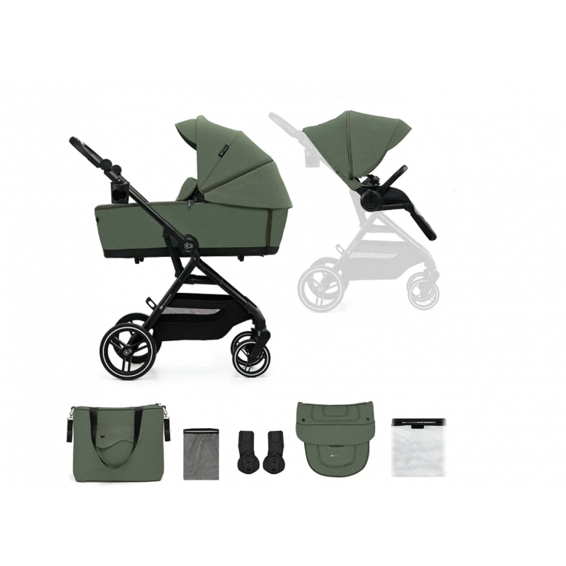 O carrinho YOXI é composto por uma alcofa grande e pode ser facilmente dobrado com o assento acoplado.