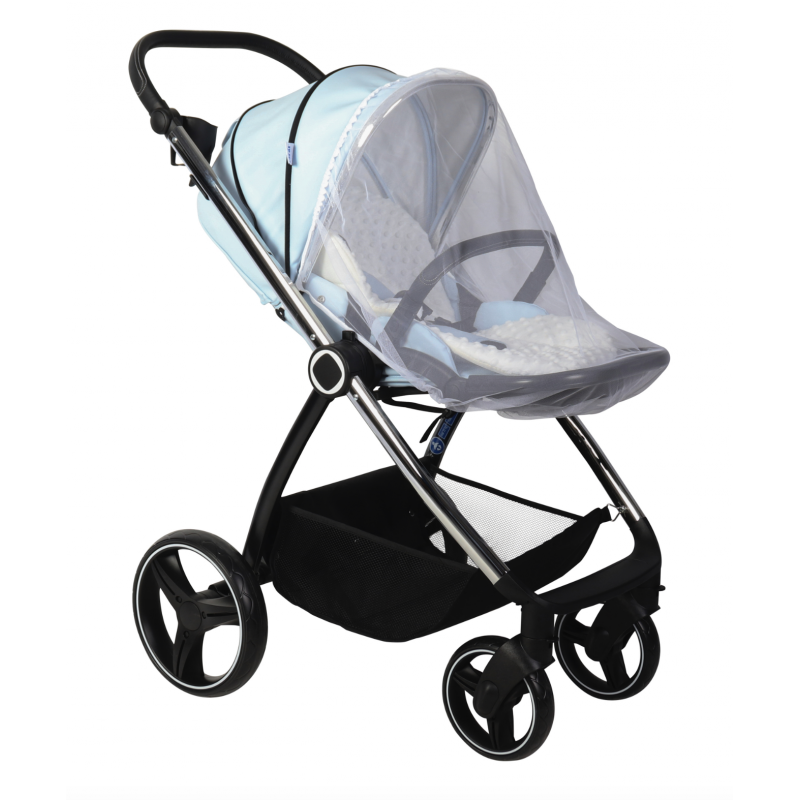Inclui bolsa, luvas, saco de musselina, muda fraldas e capa de chuva.