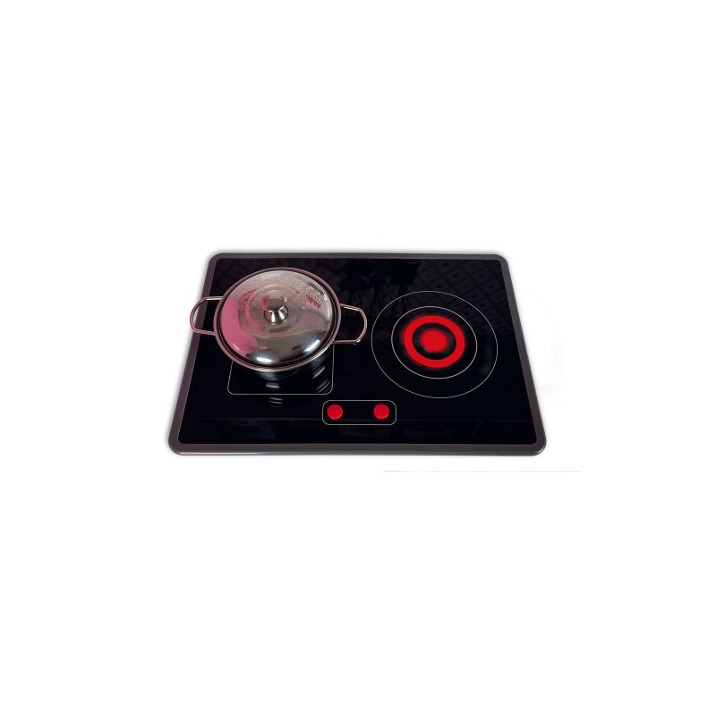Placa de indução com som e luzes LED: basta pressionar uma vez os botões vermelhos para ligar as placas e uma segunda vez para ouvir o som da água fervente. Luzes e som desligam após 30 segundos