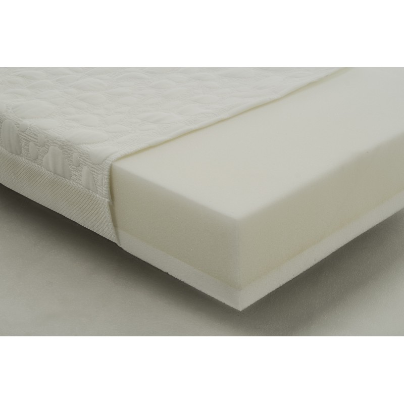 Tem um ferro em ambas as faces de visco elástico 100%, um material de última geração, que proporciona um efeito tranquilizador, um elevado poder de recuperação e uma sensação de reconforto no bebê.