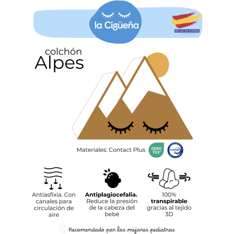 O colchão Alpes é fabricado integralmente em Espanha, com materiais seguros e certificados:
