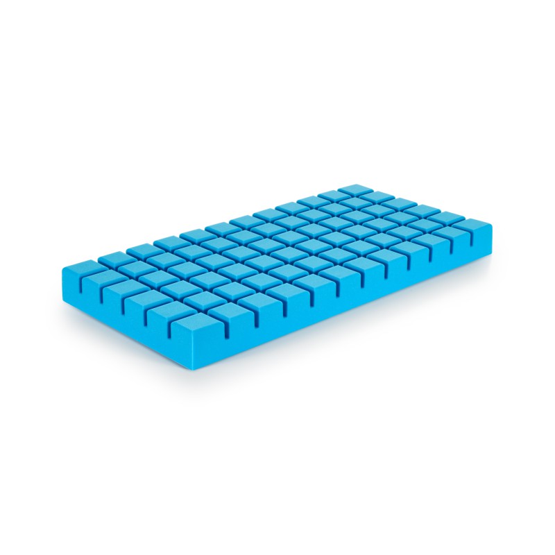 O design perfilado, com profundidade até metade do núcleo, cria canais de ar que promovem ventilação contínua e uma rápida renovação do ar sob o corpo do bebê, ajudando a manter a temperatura estável e uma higiene ideal durante o descanso.