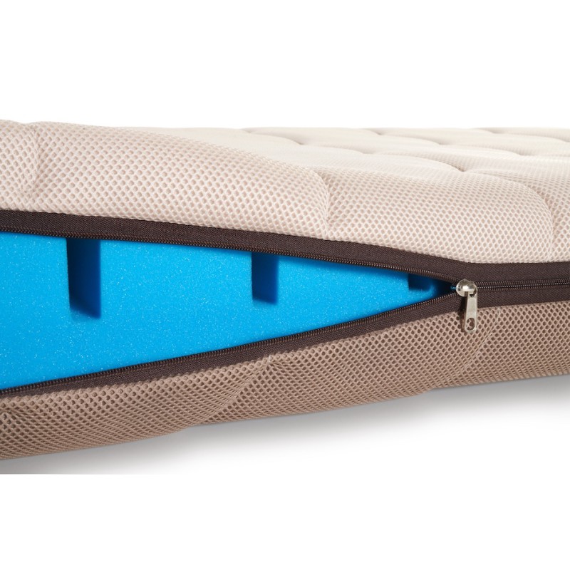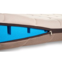 A capa do colchão é fabricada integralmente em tecido 3D de alta resistência, acolchoada com material inerte que proporciona máxima ventilação e respirabilidade, dissipando o calor e a umidade.