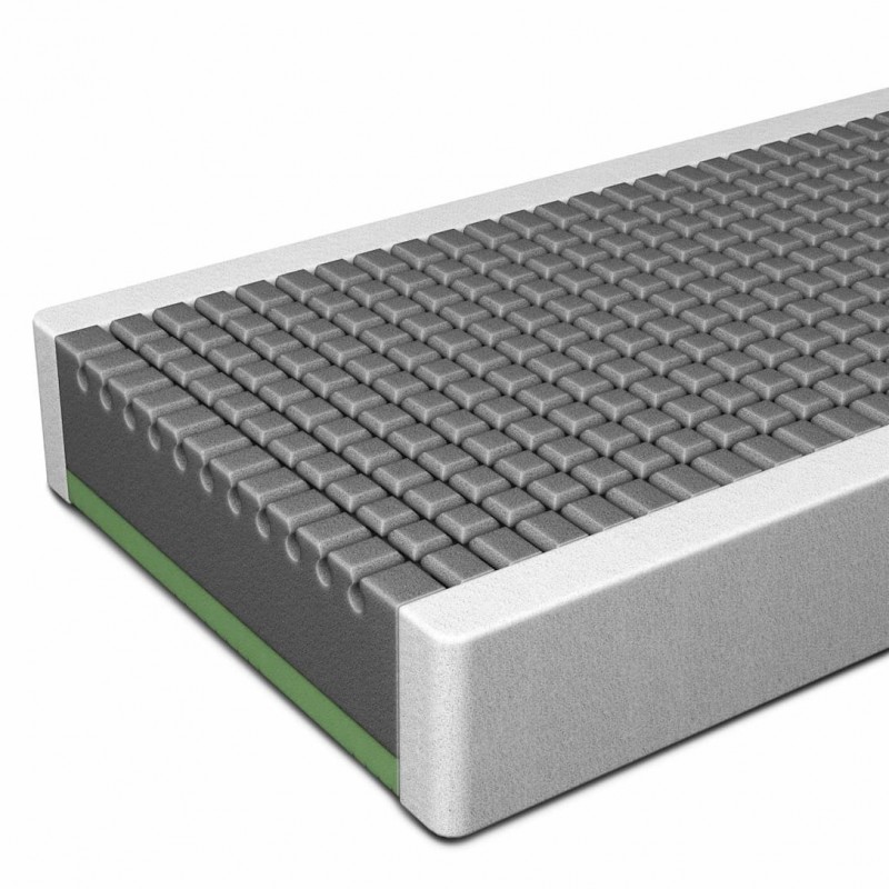 - Seu núcleo é composto por uma parte superior com uma viscoelástica perfilada muito aconchegante. Isto é ideal para o inverno. E uma parte inferior com micromolas que geram grandes canais de ventilação e um tecido 3D combinado com linho, perfeito para o verão.