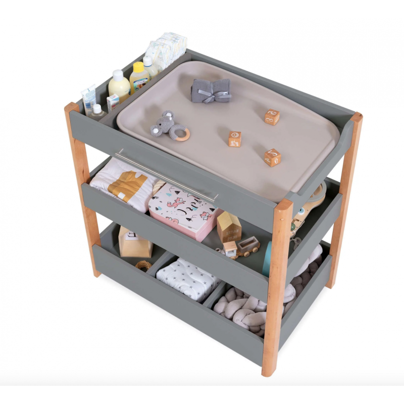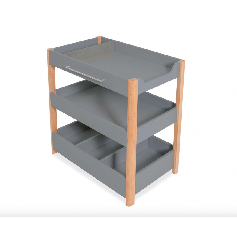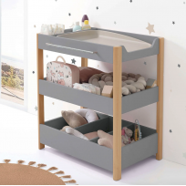 Esta é uma cómoda de 96,5 cm de altura que inclui prateleiras, perfeita para manter tudo o que precisa para os produtos de higiene do seu bebé sempre à mão.