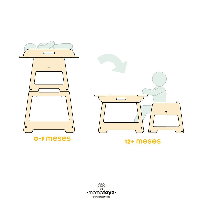 El cambiador Masali es un mueble multifuncional que se adapta al crecimiento de tu bebé. Diseñado para ofrecer comodidad y estilo, se convierte en una mesa y silla de juegos cuando tu pequeño crece.