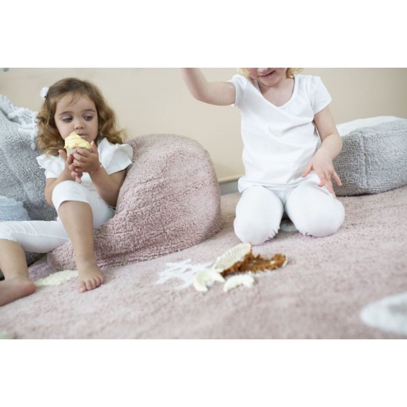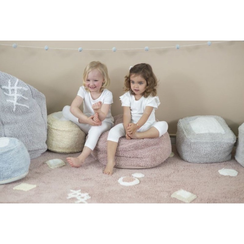 O novo CHILL IVORY Puff da coleção Lorena Canals Pijama Party é empilhável para não ocupar espaço e com seu tom branco permite combiná-lo com muitos tapetes laváveis da mesma coleção.