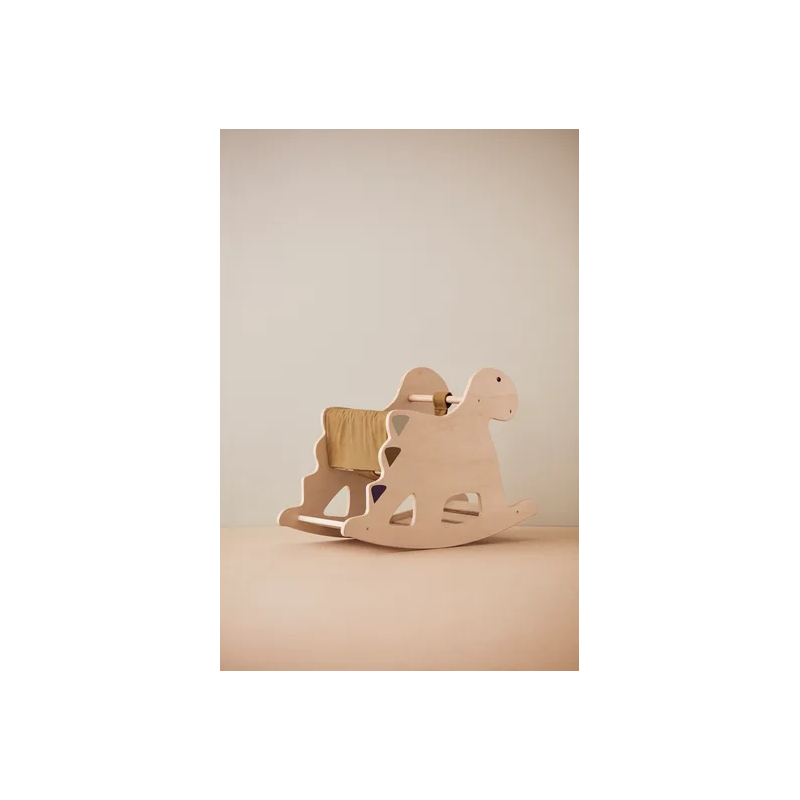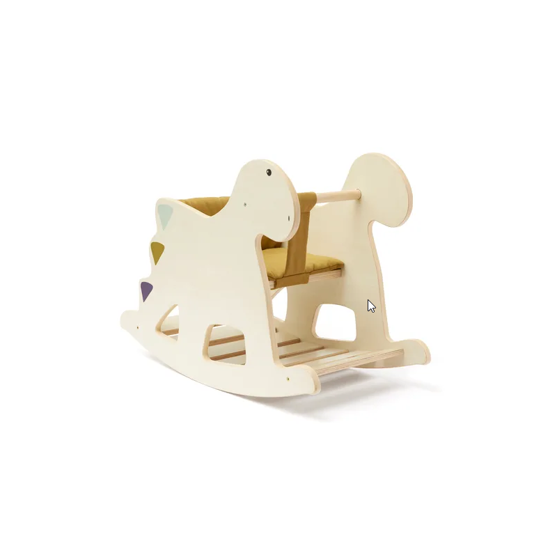 Cadeira de balanço em formato de dinossauro para que seu bebê possa sentar-se com conforto e segurança no assento, que oferece ótimo suporte