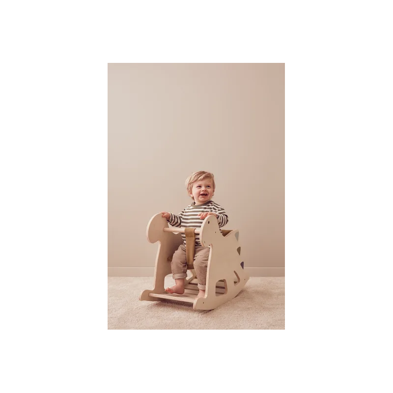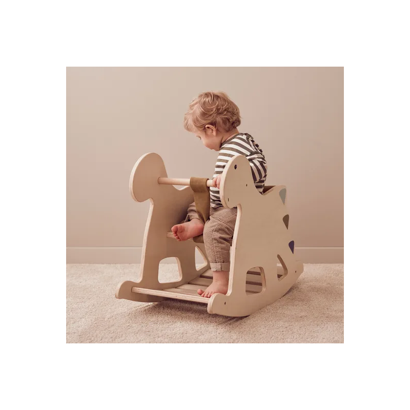 Cavalos de balanço e animais são brinquedos divertidos adequados desde tenra idade e ajudam a treinar o equilíbrio,