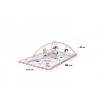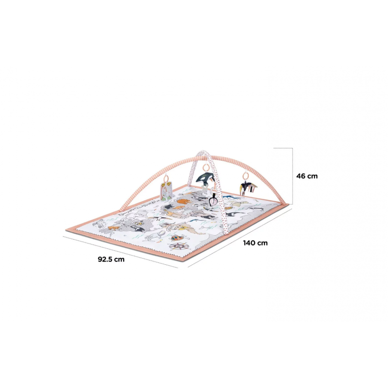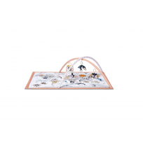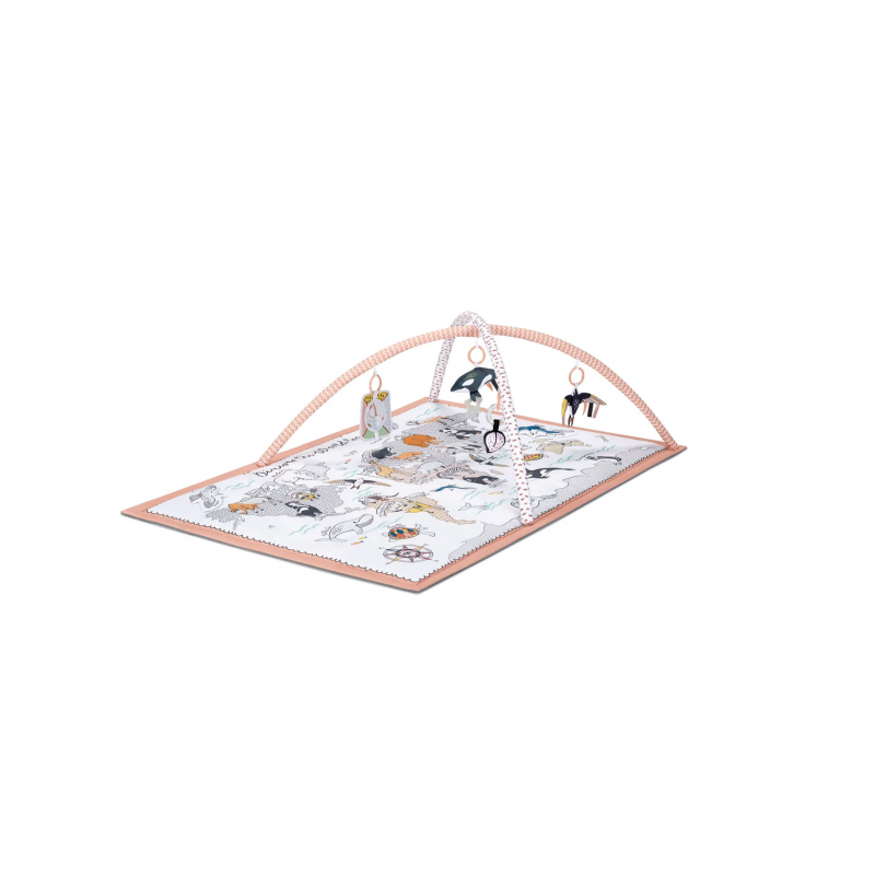 - O conjunto inclui os seguintes brinquedos: uma orca de peluche com mordedor, uma andorinha com fitas, um guizo com uma folha de peluche, um espelho e dois brinquedos sussurrantes no tapete.