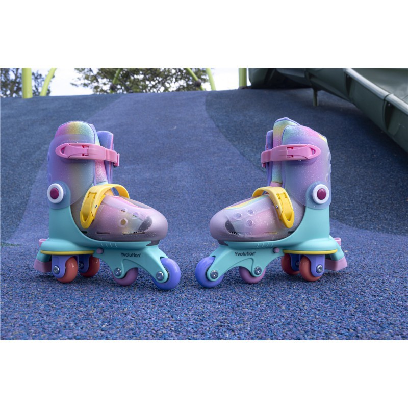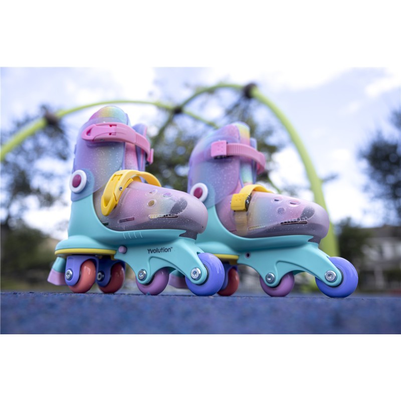 Los patines Yvolution Twista Rainbow son la opción perfecta para que los más pequeños (desde 2 años) descubran el emocionante mundo del patinaje. Diseñados para adaptarse a su crecimiento, estos patines ajustables ofrecen una experiencia segura y divertida.