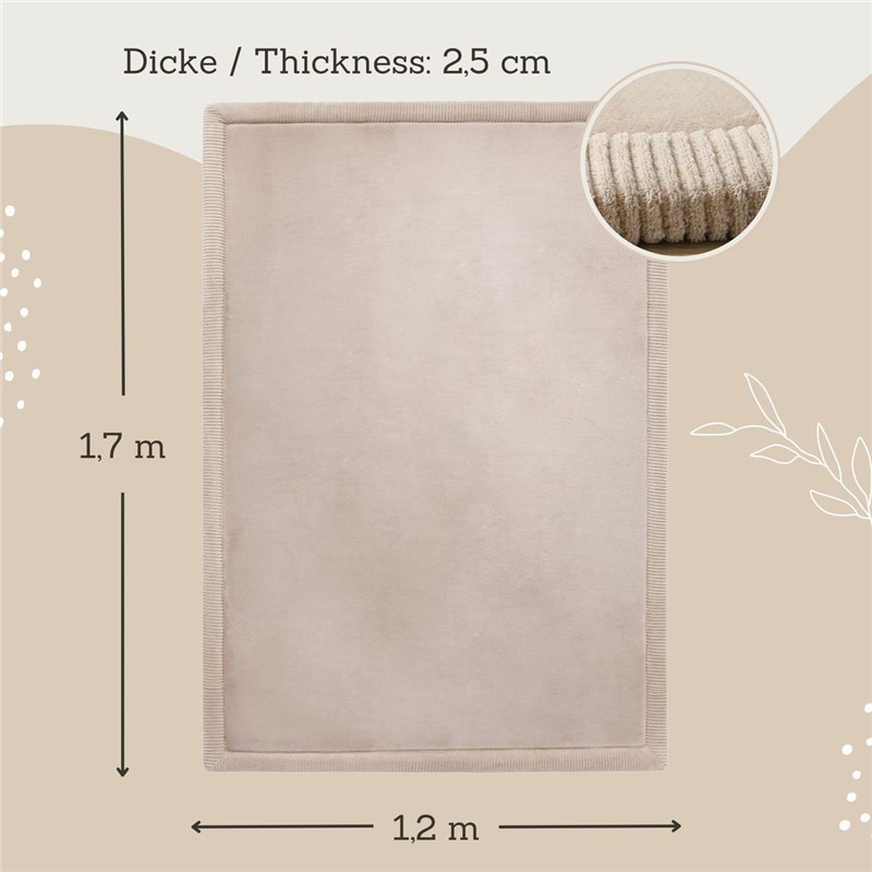 La alfombra infantil suave como una nube es ideal para el juego y el descanso. Con un tamaño extragrande de 170 x 120 x 2.5 cm, ofrece un espacio cómodo y seguro para los pequeños.