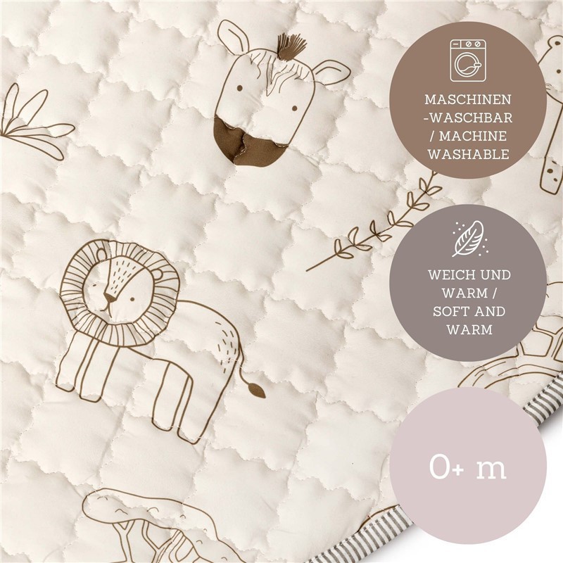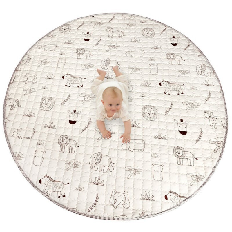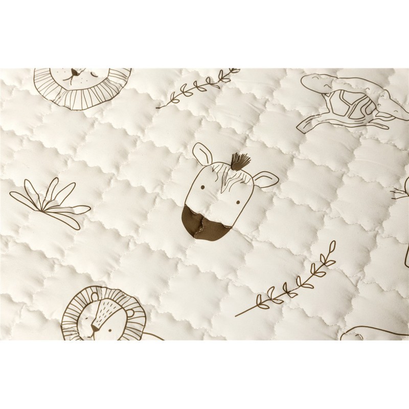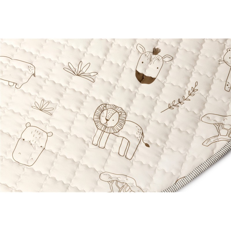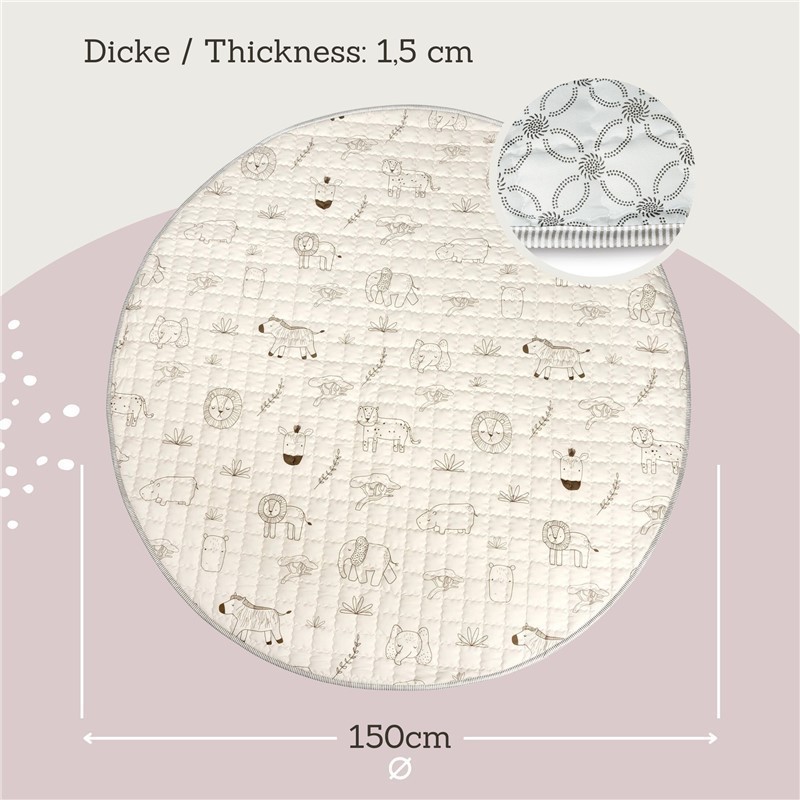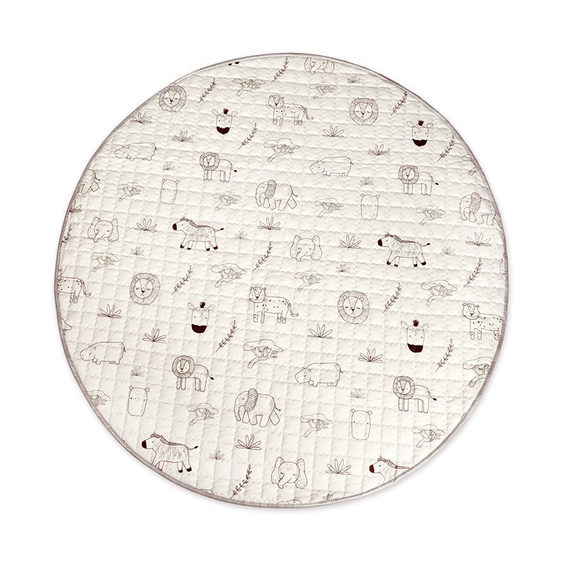 Descubre la alfombra de juego acolchada perfecta para tu pequeño aventurero. Con un encantador diseño de animales de safari en tonos pastel, esta alfombra no solo es un elemento decorativo, sino que también fomenta el juego y el desarrollo de tu hijo.
