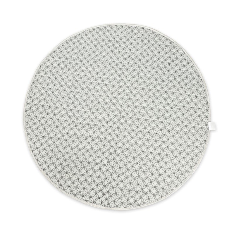 Con un diámetro de 150 cm y un grosor de 1.5 cm, esta alfombra es perfecta para gatear, jugar o hasta hacer yoga. Su parte inferior antideslizante garantiza un uso seguro, mientras que los materiales suaves y seguros cumplen con los estándares de calidad de la UE.