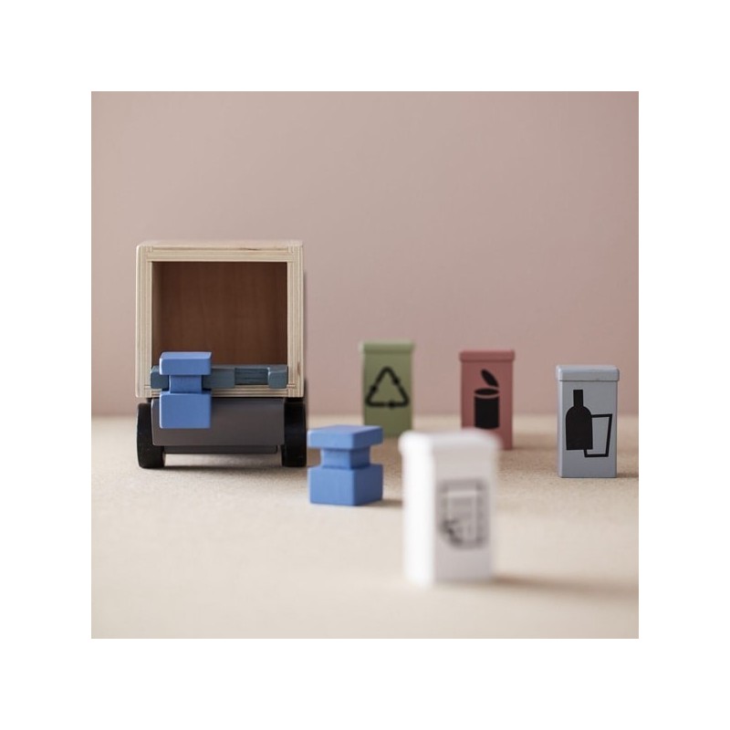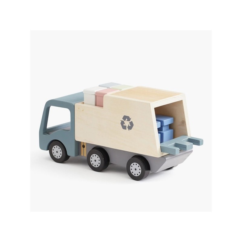 Junte-se ao seu circuito com este caminhão de lixo de madeira Aiden Kids Concept para garantir diversão !!