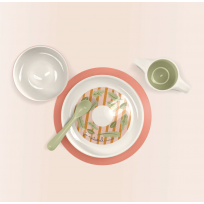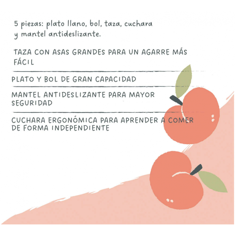 - Conjunto especial para os mais pequenos começarem a aprender a comer sozinhos.