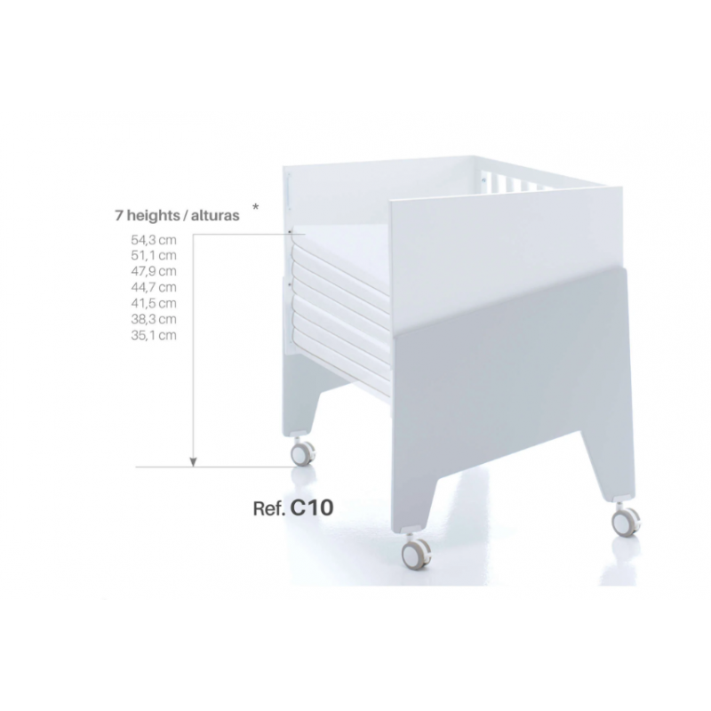 31,5 - 38,3 - 41,5 - 44,7 - 47,9 - 51,1 - 54,3 cm (altura com colchão de 5 cm)