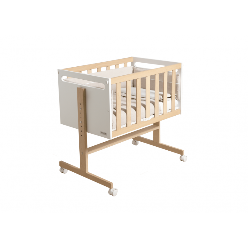 Nossa mini berço é fabricada em madeira de faia lacada em branco com tintas de água e vernizes não tóxicos. Todas as nossas madeiras provenientes de florestas geridas de forma sustentável e desenvolvemos nossos projetos, produção e distribuição sob as premissas do eco-design. Temos um grande compromisso com a produção ecológica.