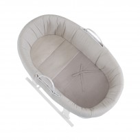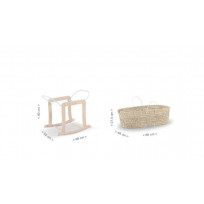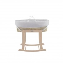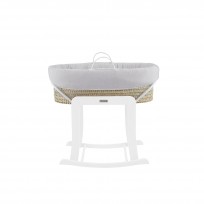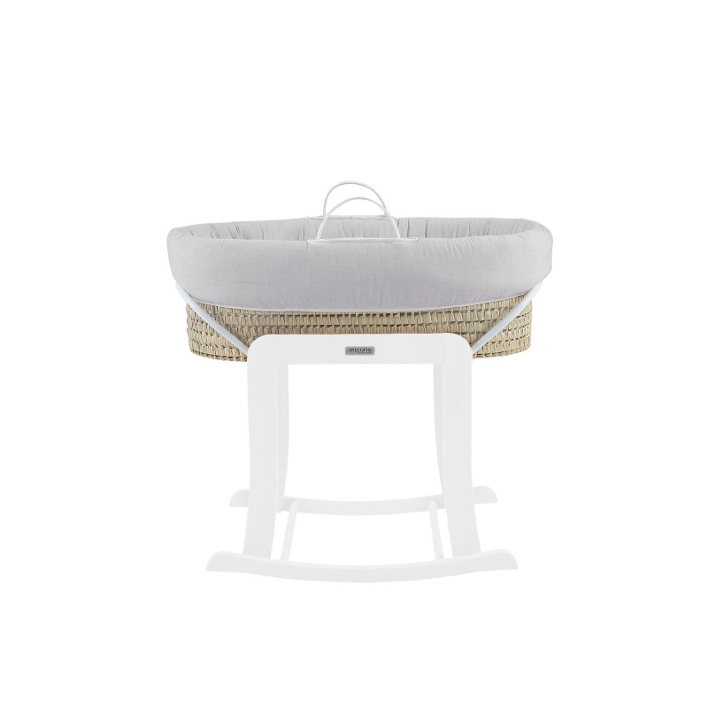 O Moses Nature by Micuna é composto por uma alcofa de fibra natural vestida com um tecido de sua escolha e uma estrutura de pernas de balanço em madeira de faia.