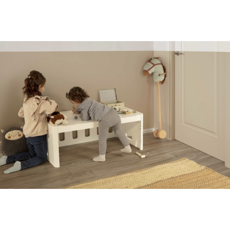 Conversível em: mini berço, co-sleeping, porta brinquedos, mesa, sofá, mesa de jogo, banco e assento de jogo