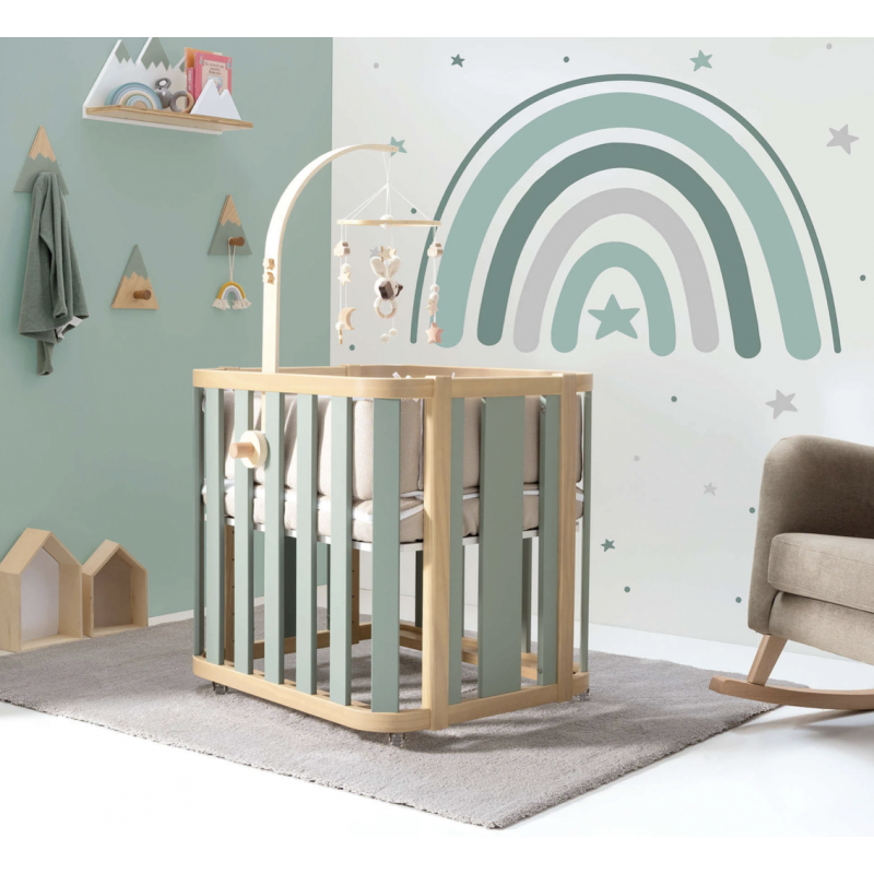 A sua estrutura é resistente, garantindo segurança e estabilidade. As suas combinações de cores quentes criarão uma atmosfera natural e reconfortante no quarto do bebé.
