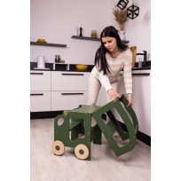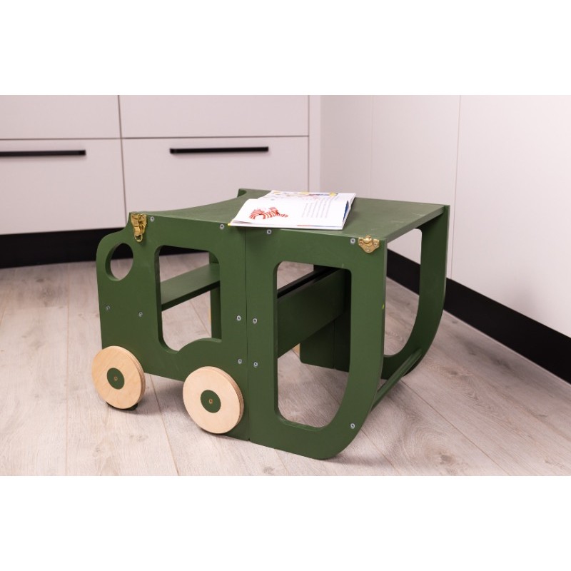 Com um simples movimento, esta torre transforma-se num conjunto de mesa e cadeira, criando um espaço ideal para desenhar, fazer trabalhos manuais, lanchar ou brincar. A sua estrutura estável e resistente é fabricada em contraplacado de bétula com um acabamento não tóxico e seguro para crianças, em conformidade com a norma europeia de segurança para brinquedos EN 71-3.
