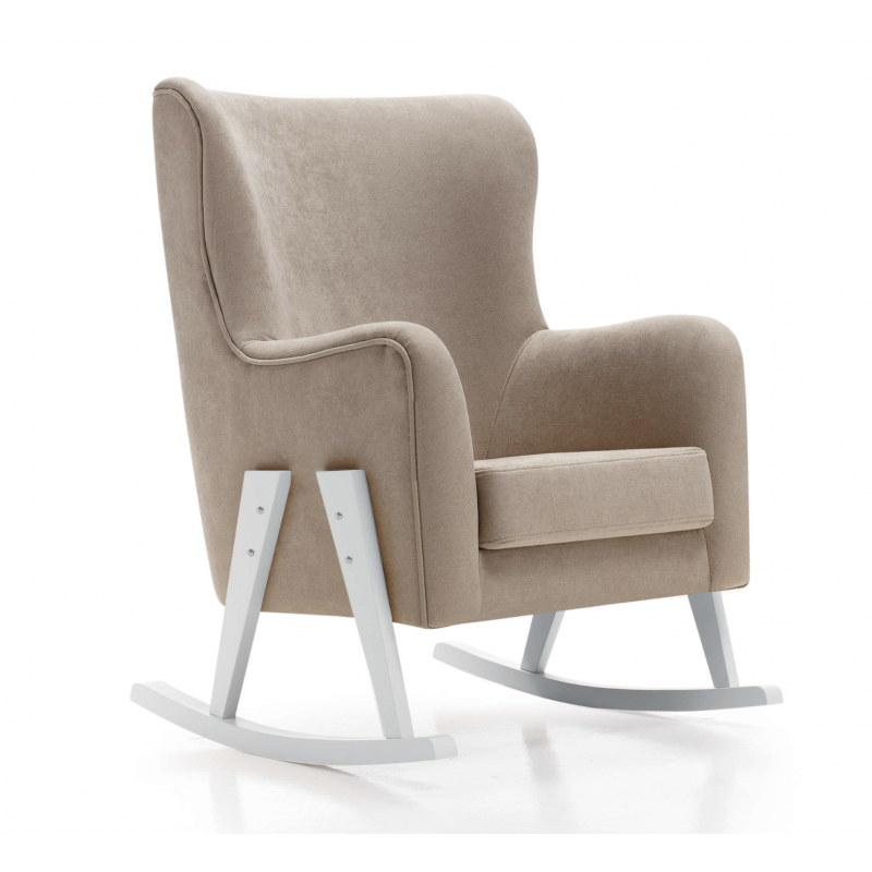 Quando você deseja parar de usar o agitador, pode remover a parte inferior curva das pernas e continuar usando-o sem os agitadores inferiores. Graças ao seu design moderno e original, adapta-se perfeitamente a qualquer ambiente ou espaço. Pernas de pinho maciço lacado a branco. Poltrona poltrona de grande conforto para passar muitos momentos com seu bebê ou simplesmente descansar. Estofado em couro macio, fácil de limpar com um pano úmido.