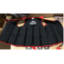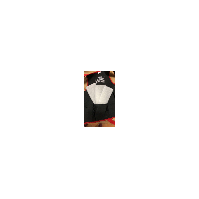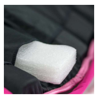 Inclui uma tira de segurança de tecido de neoprene que é colocada entre as pernas para que o colete flutuante não escorregue quando são jogados verticalmente na água e um velcro como fecho de segurança para que o zíper não possa ser aberto