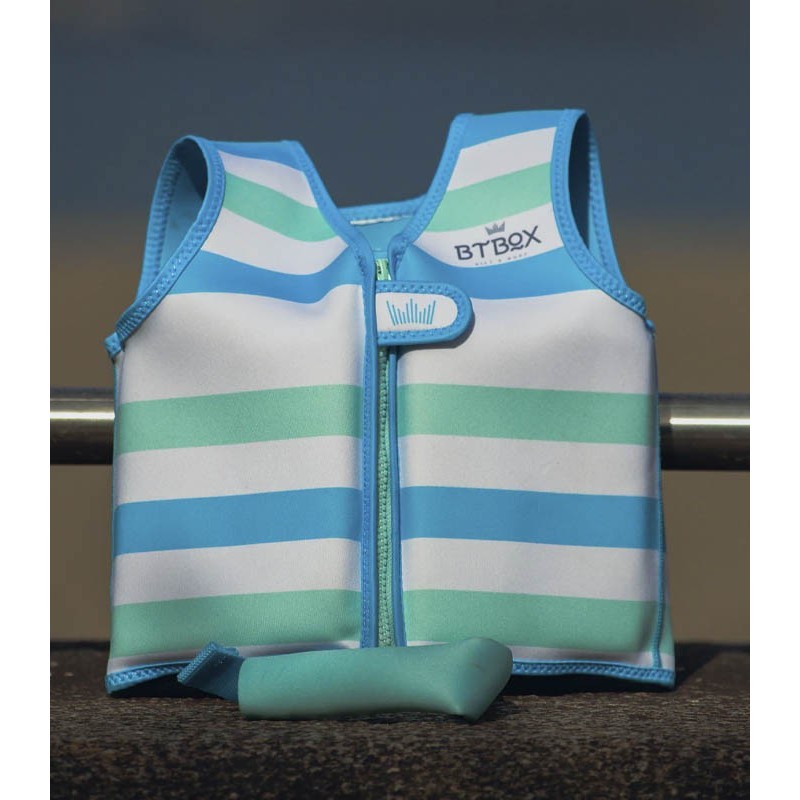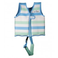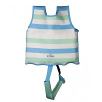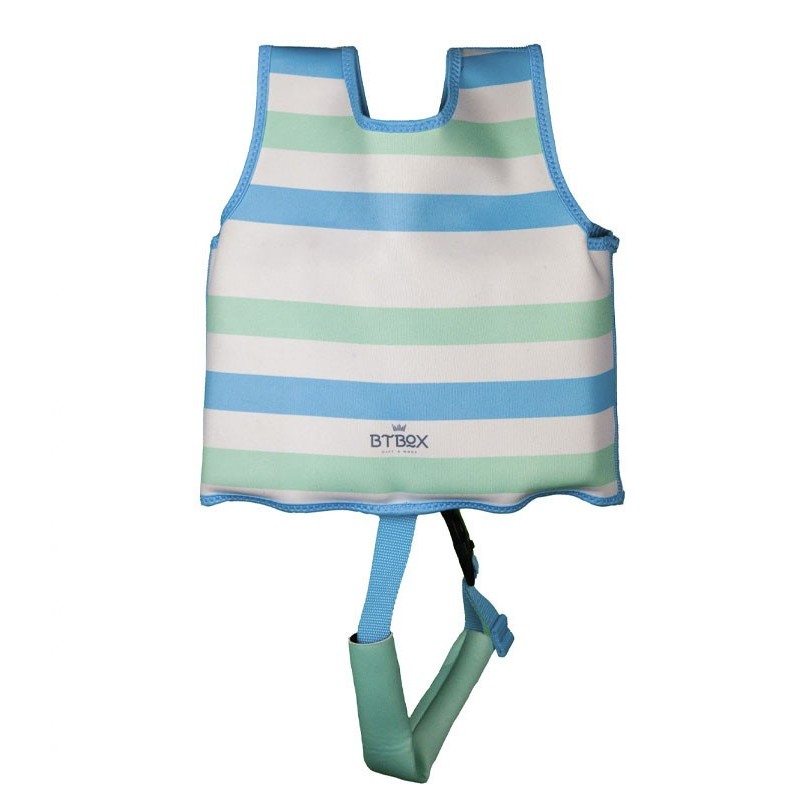 Colete de flutuação para aprendizagem de natação, em branco com riscas azuis, para crianças dos 20 aos 28 kg