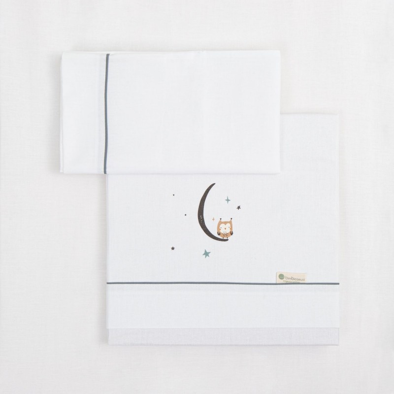 O conjunto de lençóis inclui parte inferior, superior e fronha.
