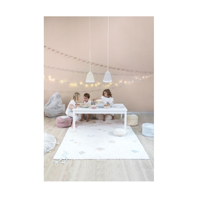 Detalhes berberes, toupeiras, franjas divertidas e acabamentos trançados. Uma aposta segura para o quarto de qualquer criança.