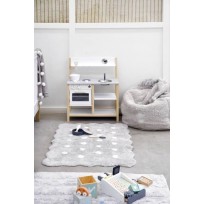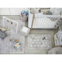 A sua forma é rectangular e pode ser colocada em qualquer espaço do quarto do nosso filho ou da sala de jogos. Os pontos brancos contrastam com o resto do tapete, o que vai ser muito lúdico para os mais pequenos.