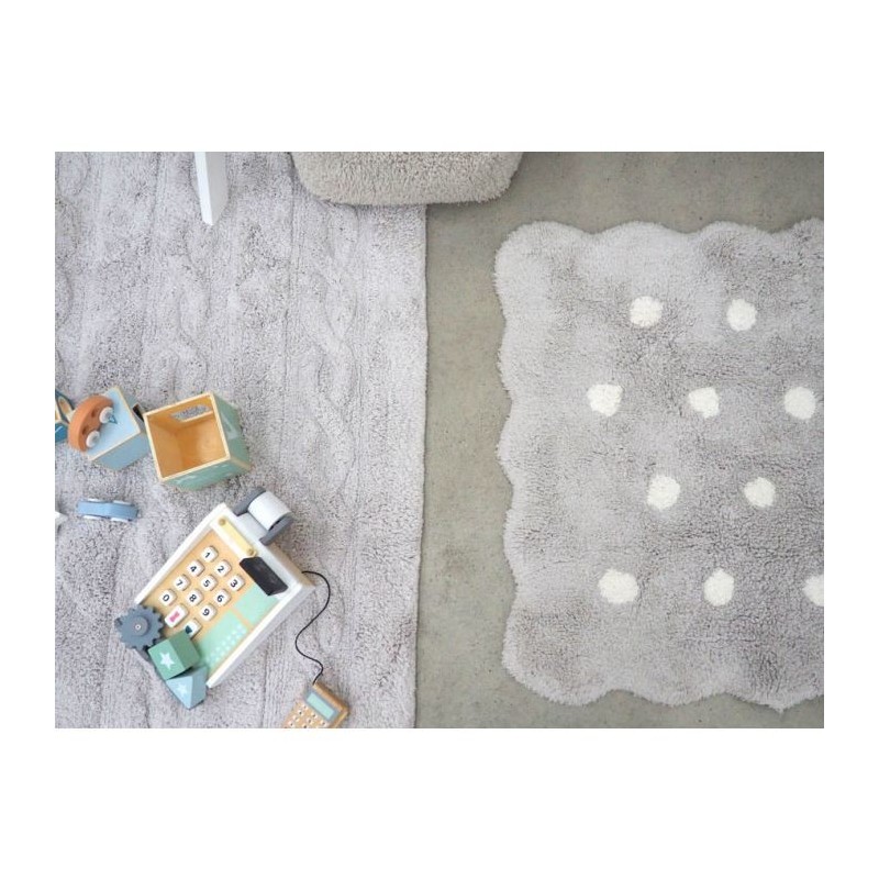 Da coleção de tapetes Biscuir da Lorena Canals encontramos a versão 'mini' do tapete cinza pérola.