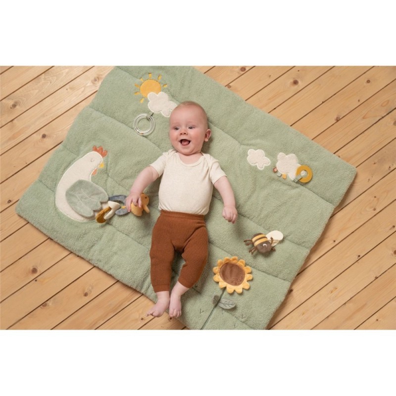 Os nossos pequeninos vão divertir-se a descobrir as diferentes texturas e sons que emitem ao tocar nos diferentes elementos.