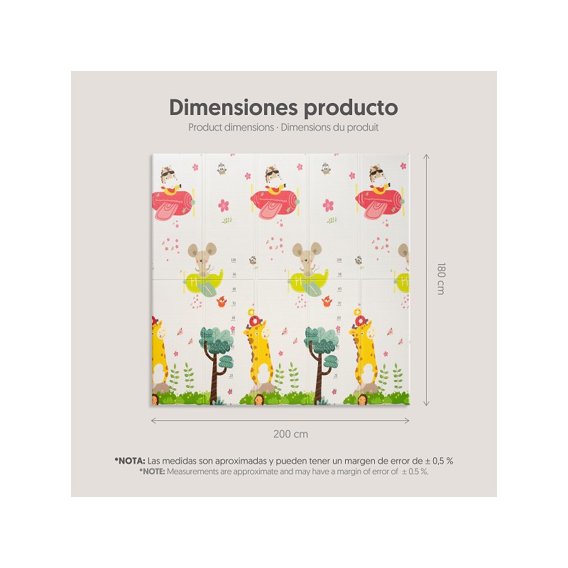 Graças ao seu grande tamanho de 180 × 200 × 1 cm, oferecem uma ampla superfície para que o bebé se mova livremente, desenvolvendo as suas capacidades motoras e cognitivas enquanto desfruta de estampados atrativos como carros, animais da selva e outros motivos infantis. Além disso, o seu efeito isolante térmico protege do frio do chão, criando um ambiente acolhedor e confortável em qualquer divisão da casa.