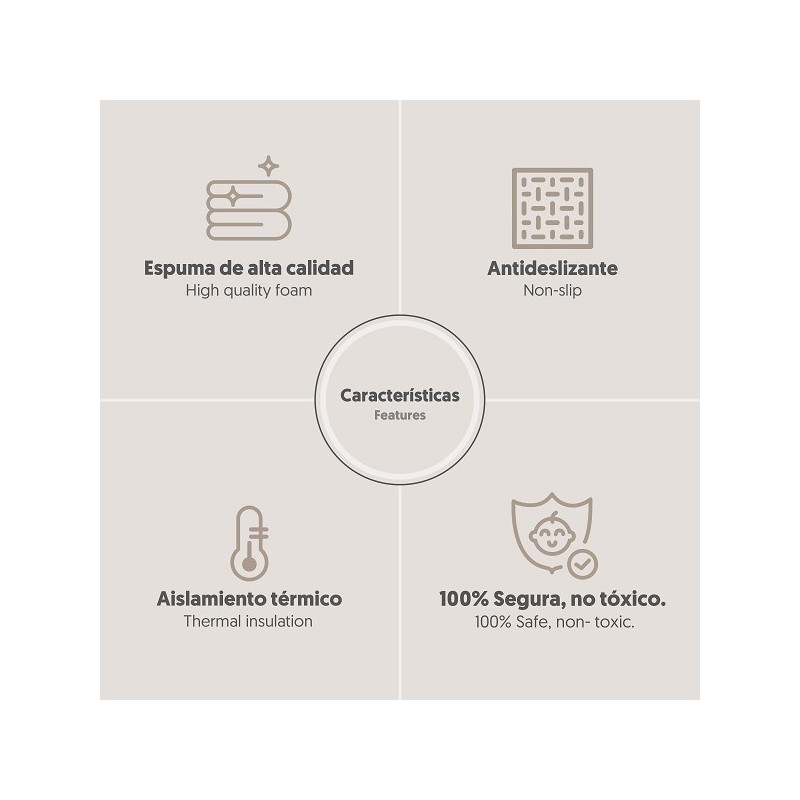 Com um design reversível e colorido, estes tapetes são fabricados em espuma XPE de alta densidade, o que garante a máxima segurança em cada momento de brincadeira.