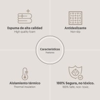 Graças ao seu grande tamanho de 180 × 200 × 1 cm, oferecem uma ampla superfície para que o bebé se mova livremente, desenvolvendo as suas capacidades motoras e cognitivas enquanto desfruta de estampados atrativos como carros, animais da selva e outros motivos infantis. Além disso, o seu efeito isolante térmico protege do frio do chão, criando um ambiente acolhedor e confortável em qualquer divisão da casa.