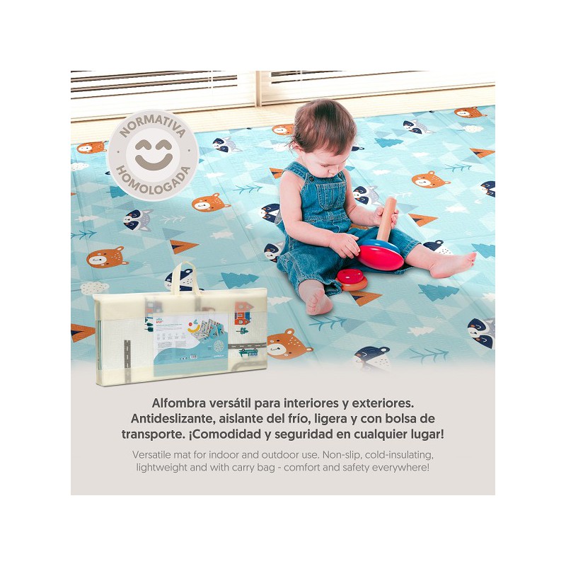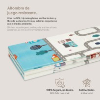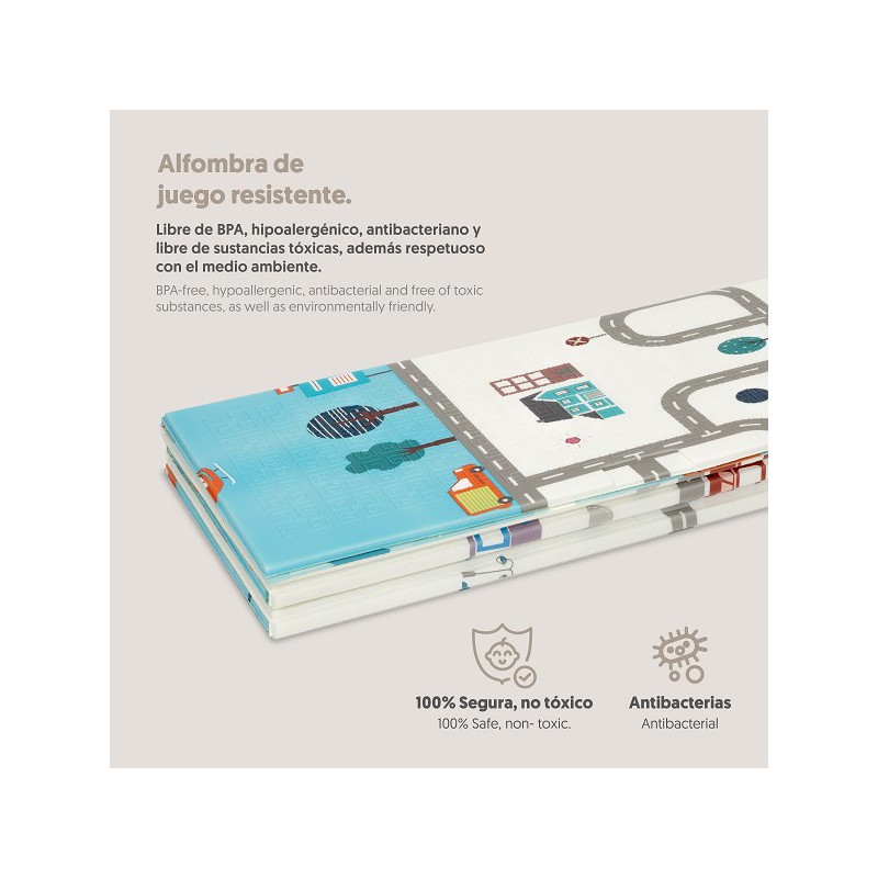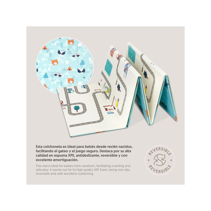 O tapete de jogos é o acessório ideal para criar um espaço seguro, confortável e divertido onde o seu bebé pode explorar, gatinhar e brincar com toda a tranquilidade. Com um design reversível e colorido, estes tapetes são fabricados em espuma XPE de alta densidade, um material macio, antiderrapante e totalmente livre de substâncias tóxicas (BPA, PVC, ftalatos e formamida), garantindo a máxima segurança em cada momento de brincadeira.