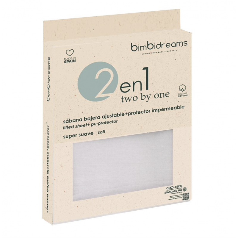 Lençol com elástico em algodão orgânico + protetor impermeável Bimbidreams.