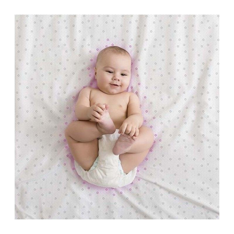 Este inovador lençol 2 em 1 possui um sistema patenteado feito com uma técnica de impressão termocrômica que muda de cor quando o bebê apresenta os primeiros sintomas de febre, sendo totalmente sensível às mudanças de temperatura.