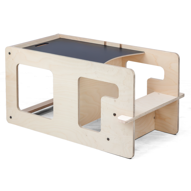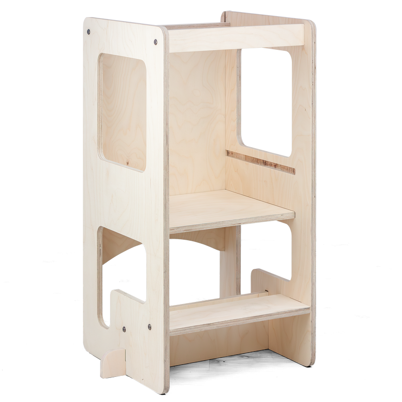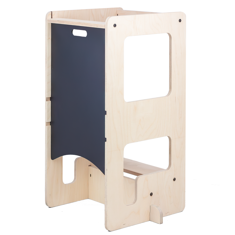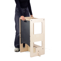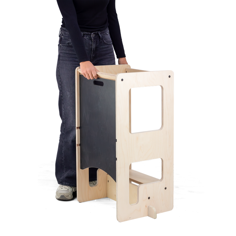 Con 2 alturas ajustables, la Torre Flip es perfecta para hogares con espacio limitado, promoviendo la educación activa y el tiempo compartido en familia.